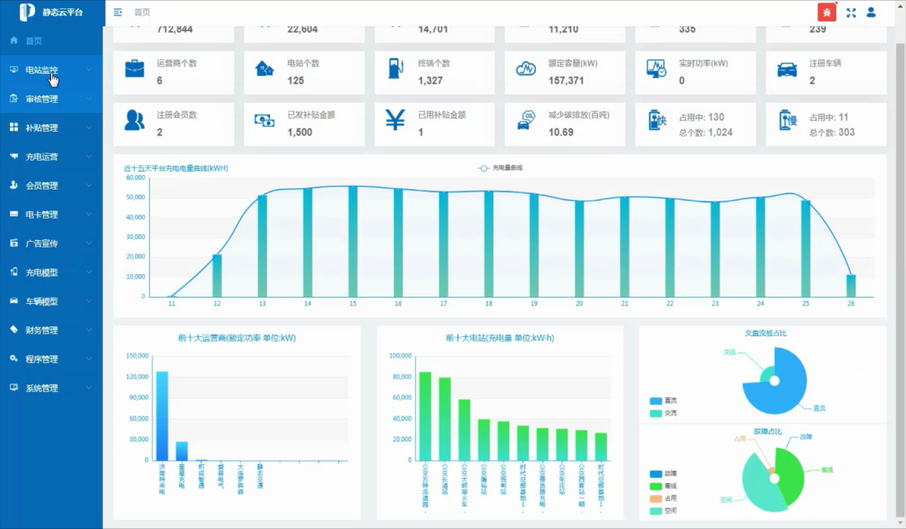 新能源充電設(shè)施監(jiān)管服務(wù)系統(tǒng)具備運(yùn)營(yíng)商審批備案、個(gè)人及企業(yè)購(gòu)車(chē)補(bǔ)貼、企業(yè)評(píng)級(jí)、電站驗(yàn)收等功能,實(shí)現(xiàn)對(duì)全市充電站數(shù)據(jù)的匯總監(jiān)管,補(bǔ)貼下發(fā)、掃碼充電、補(bǔ)貼使用、余額查詢等。